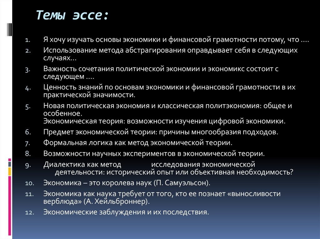 Темы эссе:1.