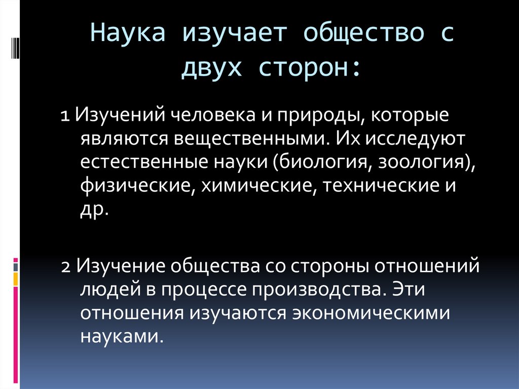 Наука изучает общество сдвух сторон:
