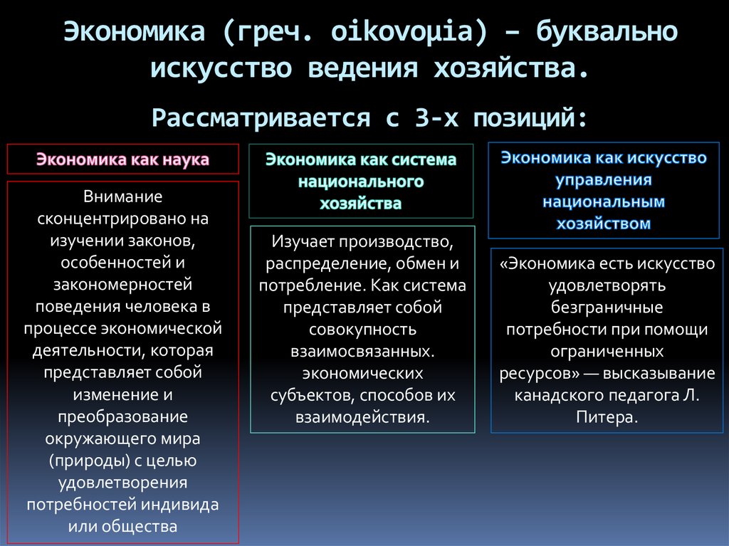 Экономика (греч. oikovoµia) – буквальноискусство ведения хозяйства.