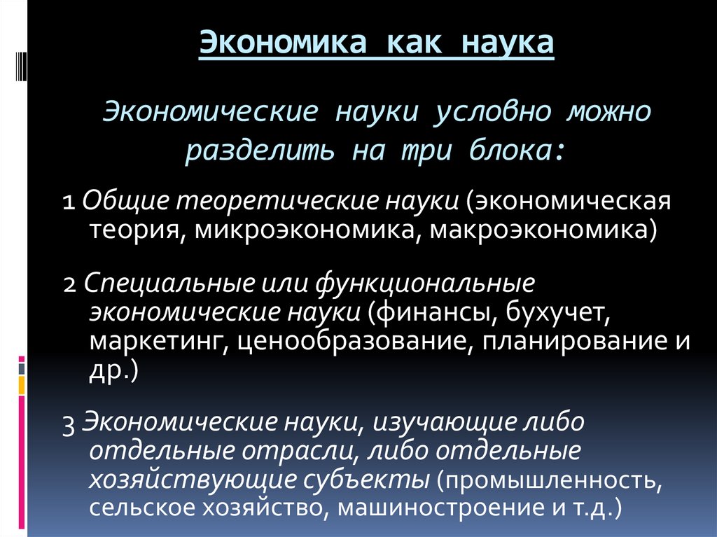 Экономика как наукаЭкономические науки условно можно