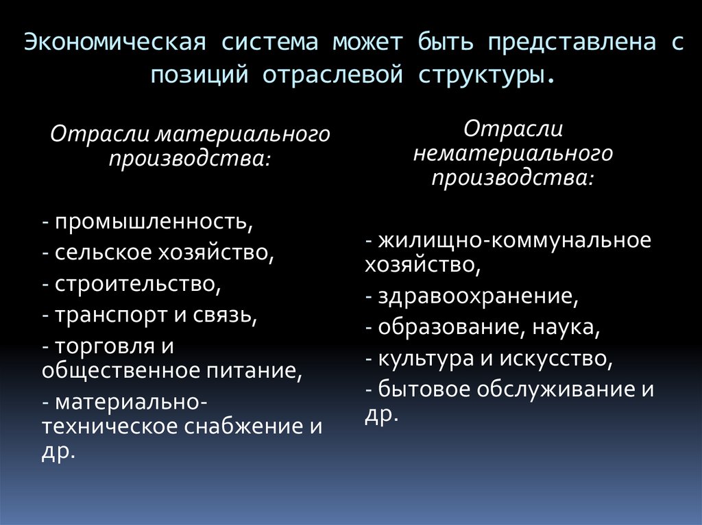 отдельные отрасли, либо отдельные