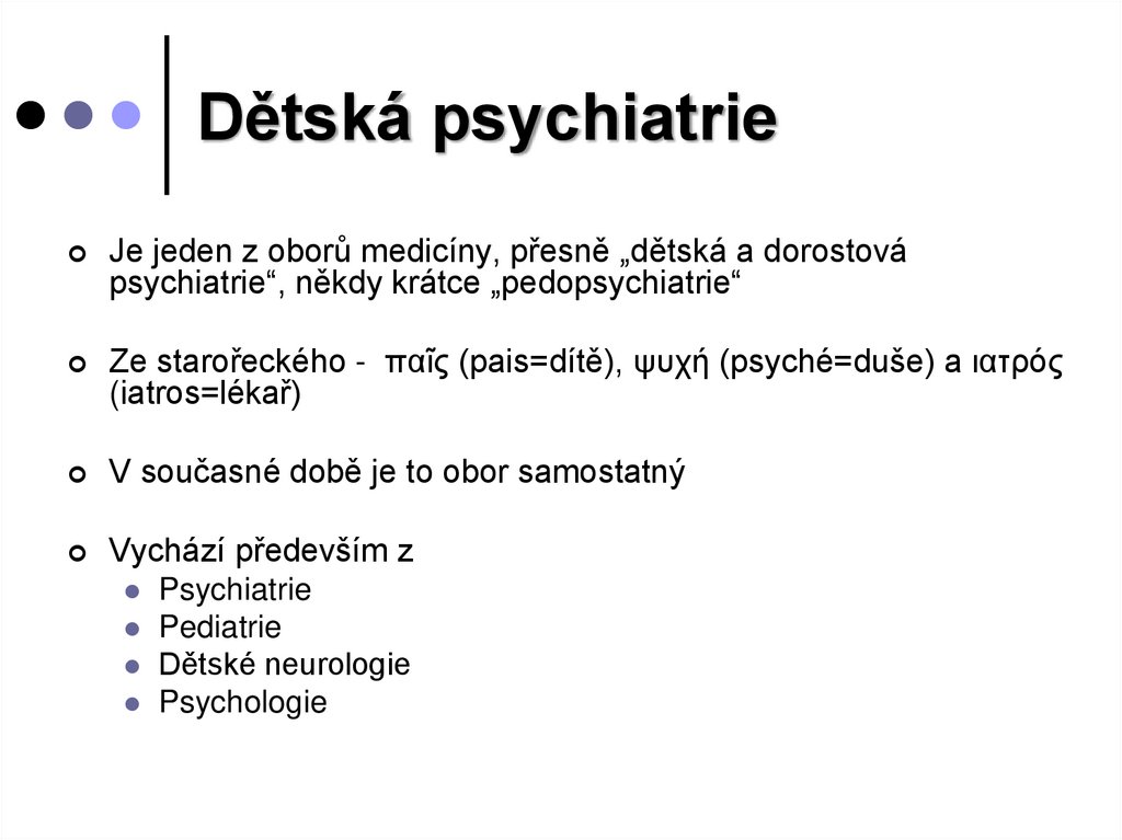 Je jeden z oborů medicíny, přesně „dětská a dorostovápsychiatrie“, někdy krátce „pedopsychiatrie“
