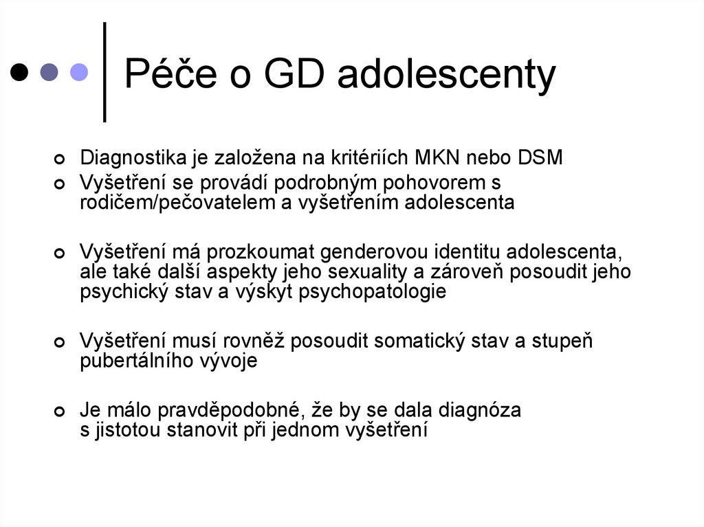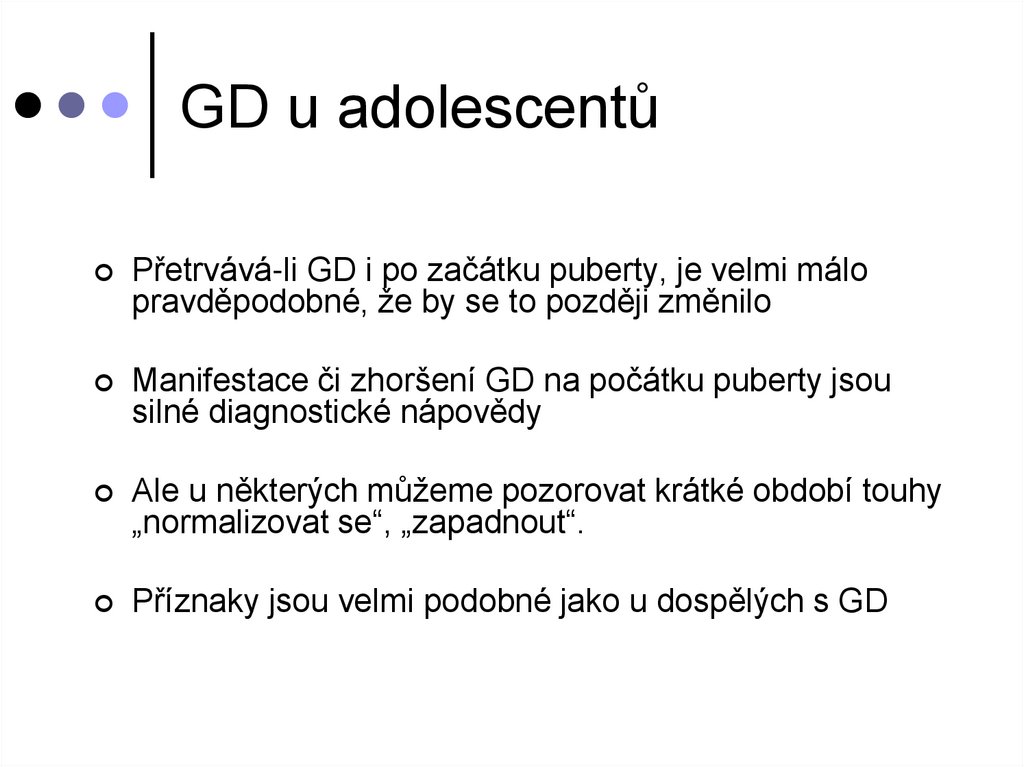 Přetrvává-li GD i po začátku puberty, je velmi málopravděpodobné, že by se to později změnilo