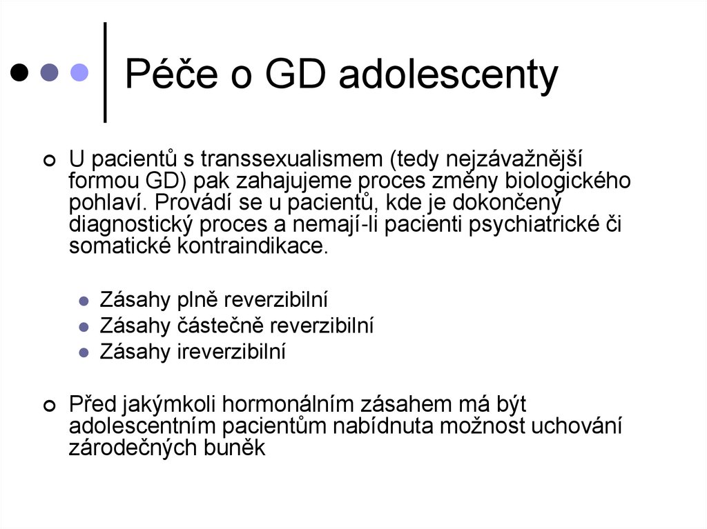 U pacientů s transsexualismem (tedy nejzávažnějšíformou GD) pak zahajujeme proces změny biologického