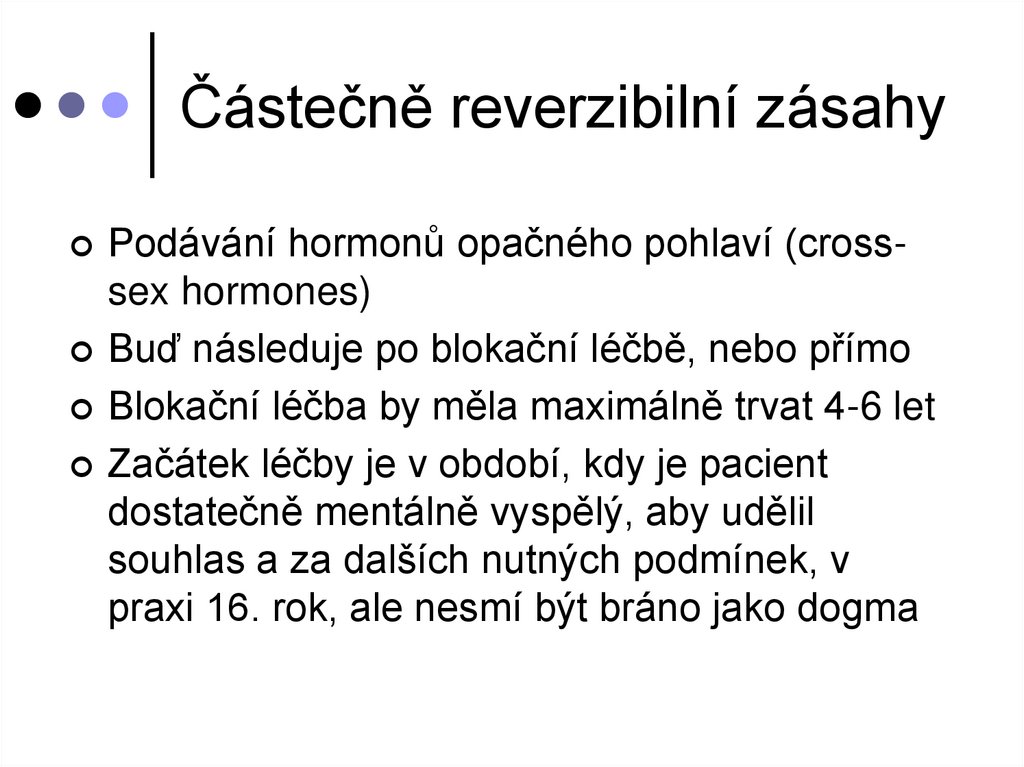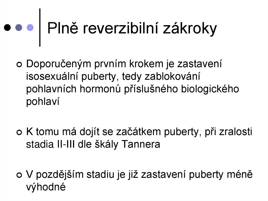 Doporučeným prvním krokem je zastaveníisosexuální puberty, tedy zablokování