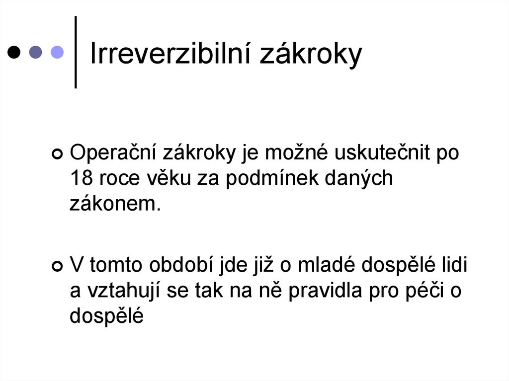 Operační zákroky je možné uskutečnit po18 roce věku za podmínek daných
