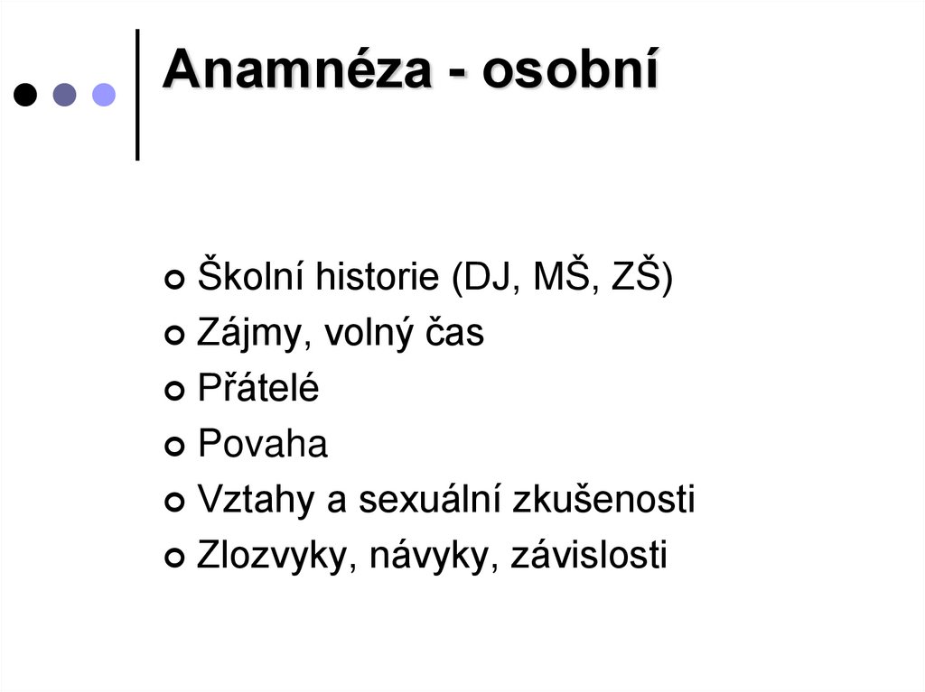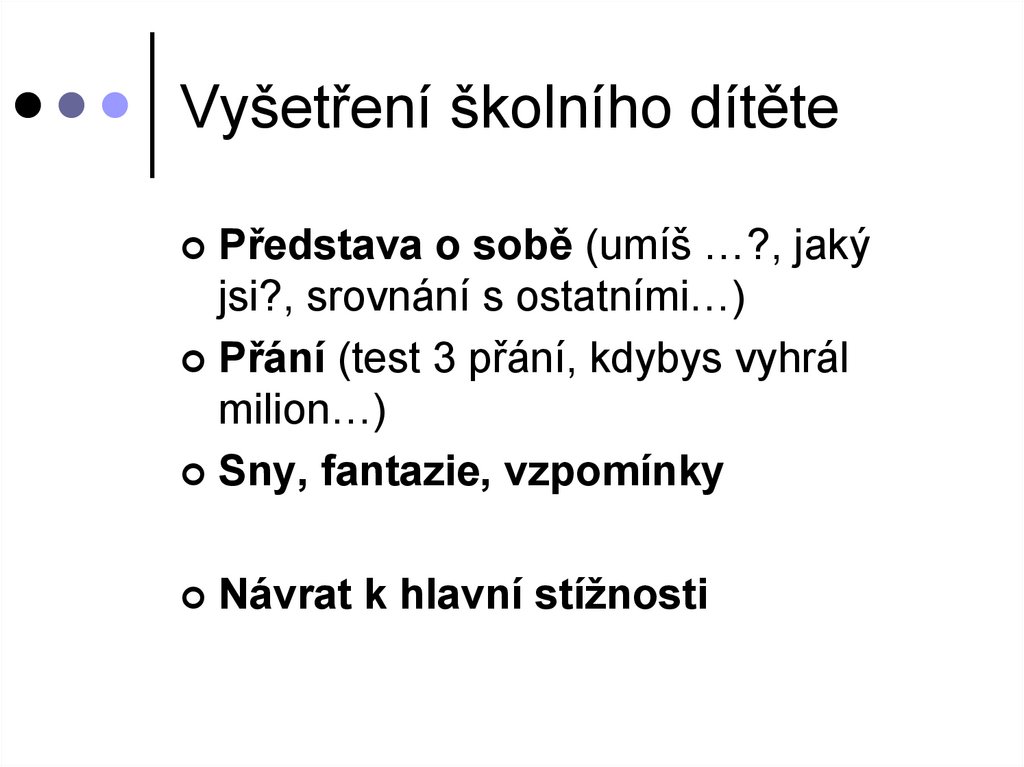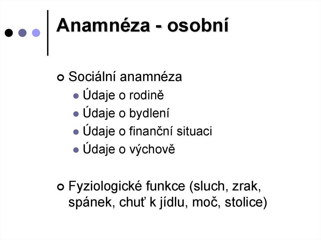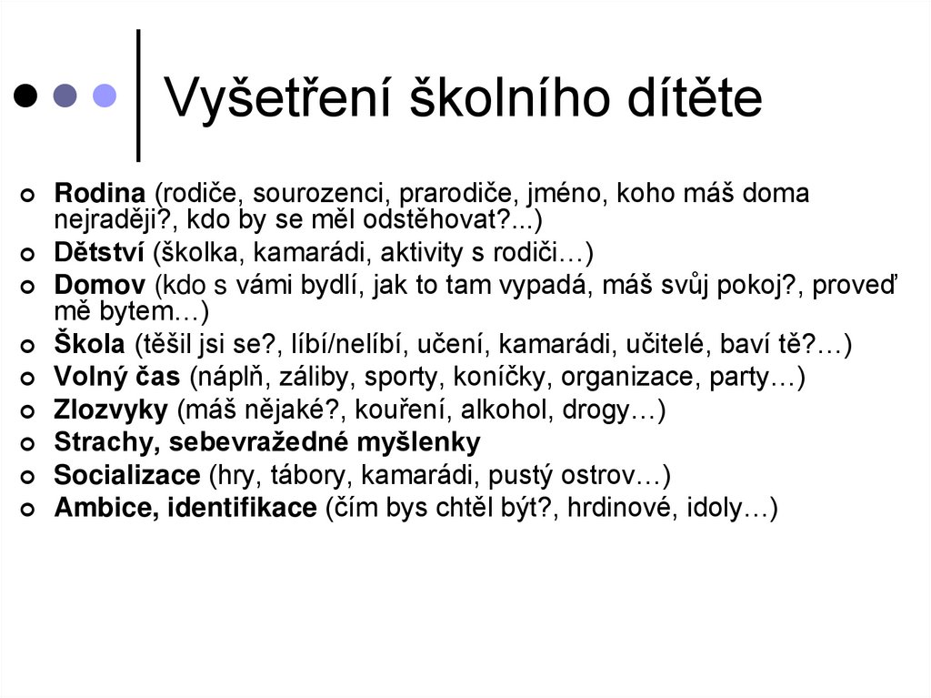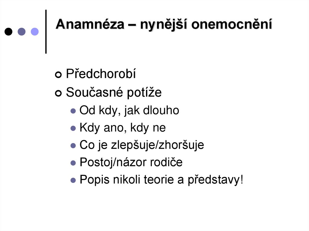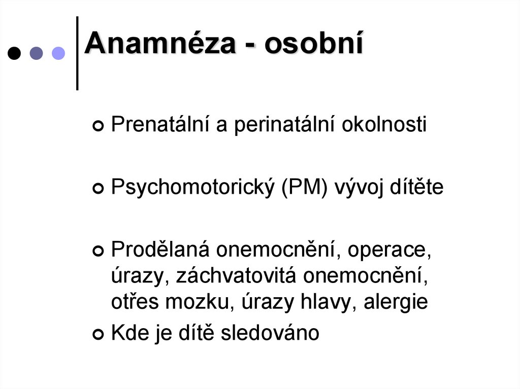 Anamnéza (obvykle od rodičů)Vyšetření dítěte