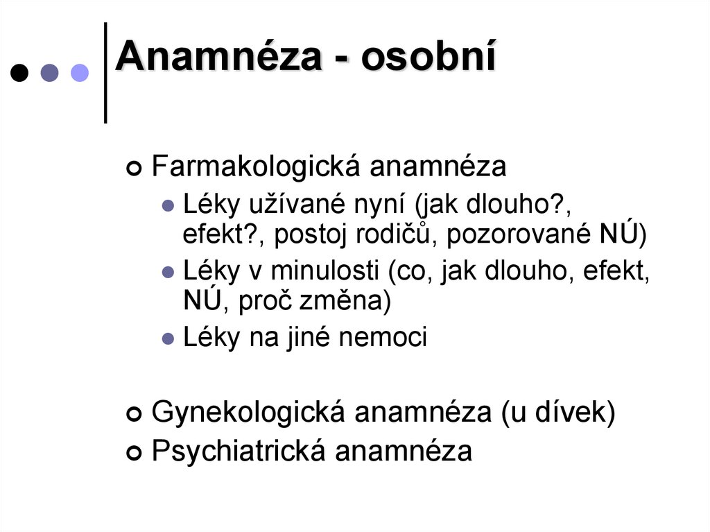 Farmakologická anamnézaLéky užívané nyní (jak dlouho?,