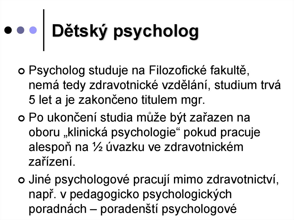 Psycholog studuje na Filozofické fakultě,nemá tedy zdravotnické vzdělání, studium trvá