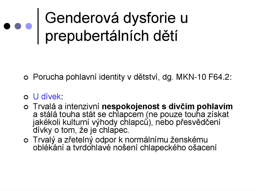 Dříve se doporučovala terapie posilující přijetíbiologického pohlaví