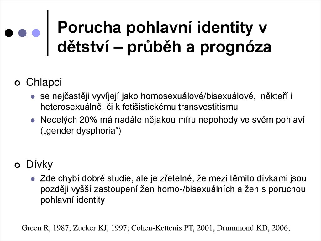 Green R, 1987; Zucker KJ, 1997; Cohen-Kettenis PT, 2001, Drummond KD, 2006;