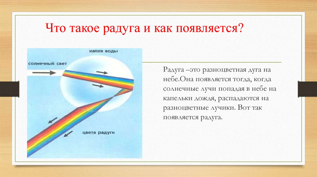 Что такое радуга и как появляется?Радуга –это разноцветная дуга на