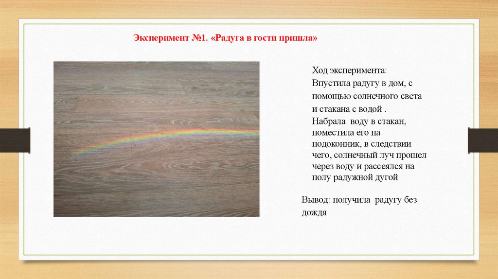 Эксперимент №1. «Радуга в гости пришла»Ход эксперимента: