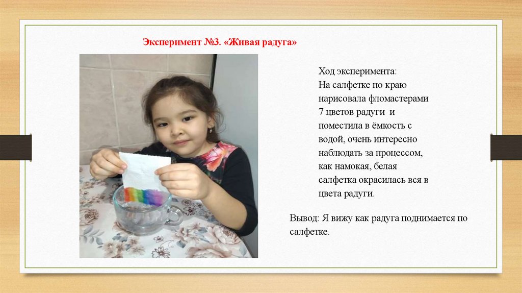 Эксперимент №3. «Живая радуга»Ход эксперимента: