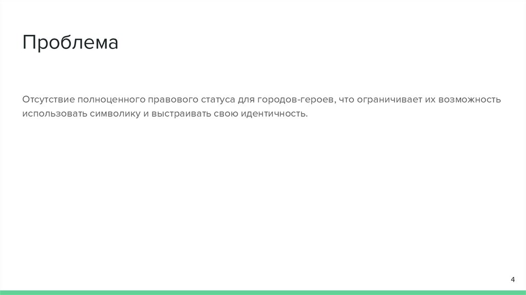 ПроблемаОтсутствие полноценного правового статуса для городов-героев, что ограничивает их возможность