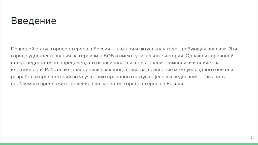 ВведениеПравовой статус городов-героев в России — важная и актуальная тема, требующая анализа. Эти