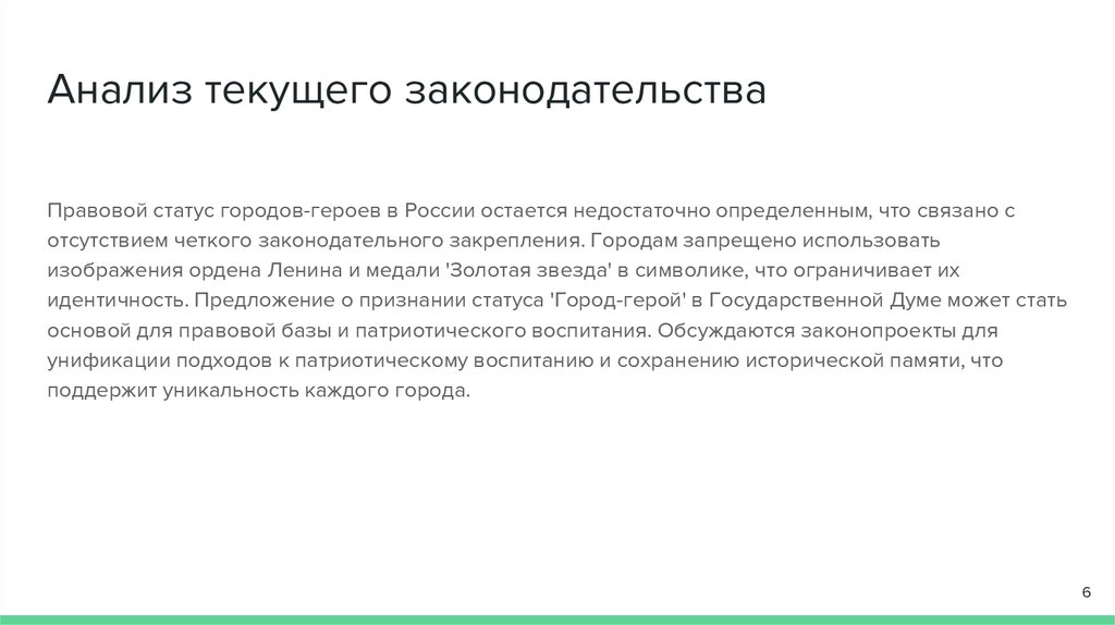 Анализ текущего законодательстваПравовой статус городов-героев в России остается недостаточно определенным, что связано с