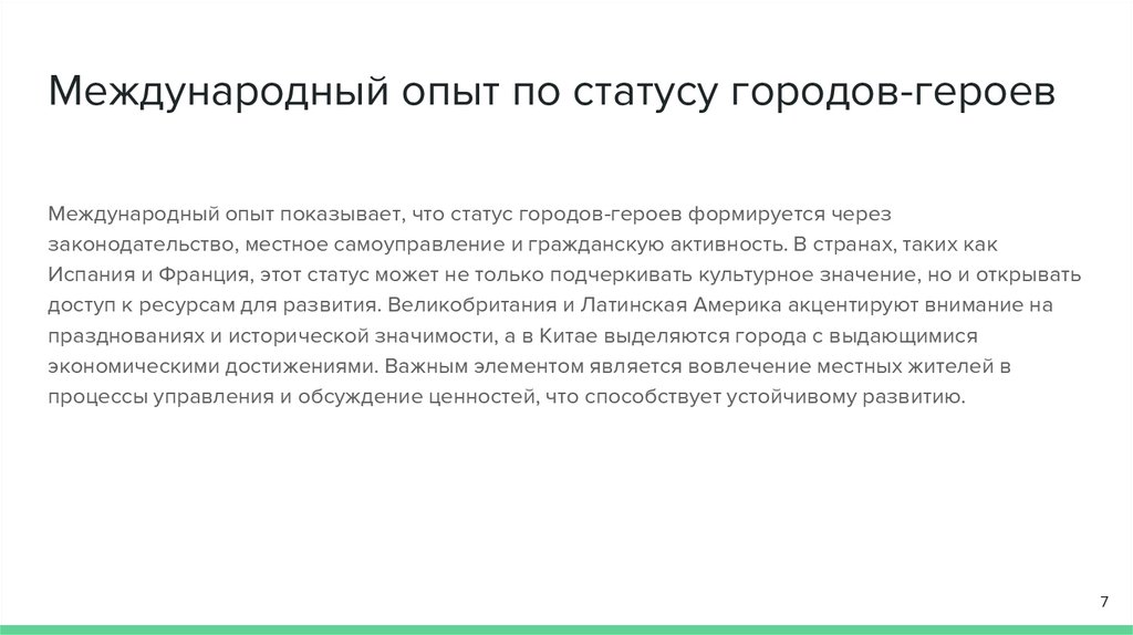 Международный опыт по статусу городов-героевМеждународный опыт показывает, что статус городов-героев формируется через
