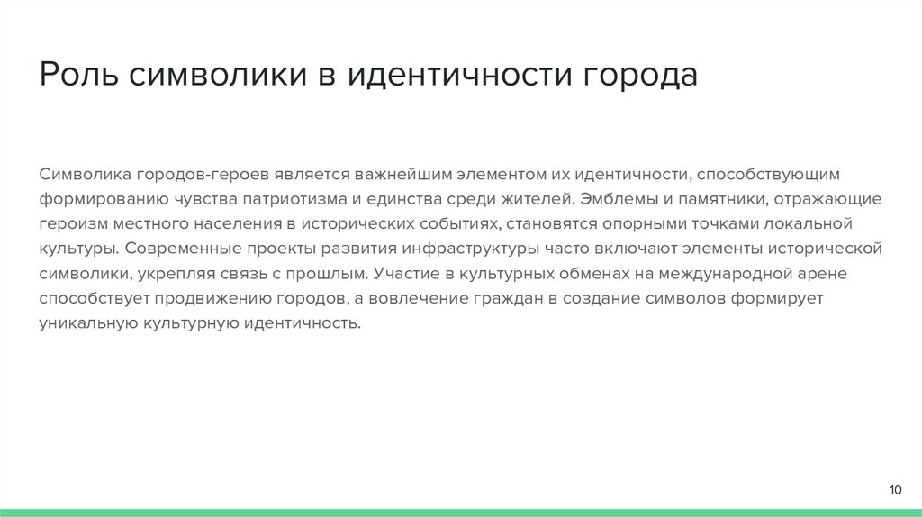 Роль символики в идентичности городаСимволика городов-героев является важнейшим элементом их идентичности, способствующим