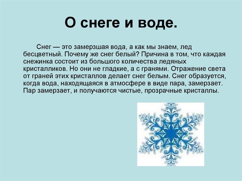 от граней этих кристаллов делает снег белым. Снег образуется,
