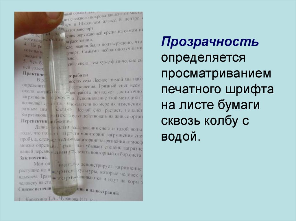 1. Оценка загрязнённости воды путем отстаивания талого снега