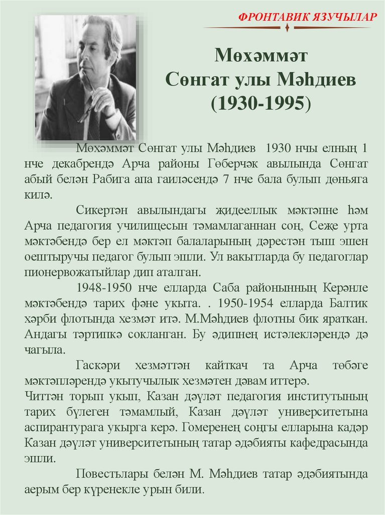 Фронтавик язучылар Мөхәммәт Сөнгат улы Мәһдиев (1930-1995)