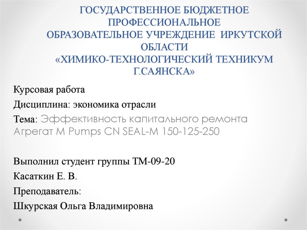Дисциплина: экономика отрасли
