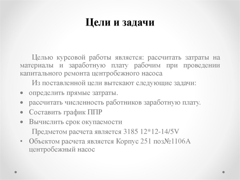 Цели и задачиЦелью курсовой работы является: рассчитать затраты на