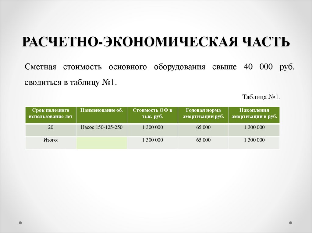 РАСЧЕТНО-ЭКОНОМИЧЕСКАЯ ЧАСТЬСметная стоимость основного оборудования свыше 40 000 руб.