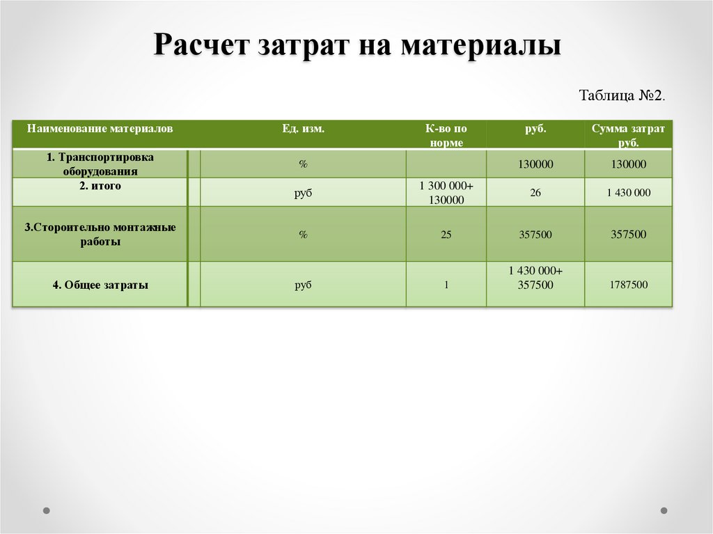 Расчет затрат на материалыТаблица №2.