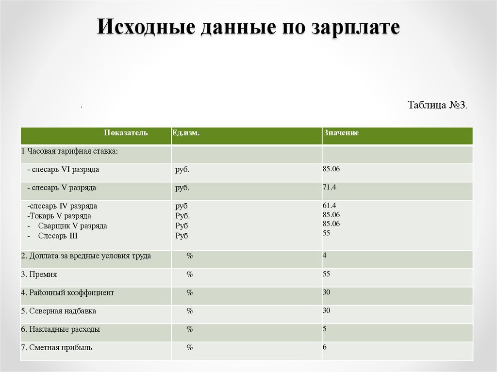 Исходные данные по зарплатеТаблица №3.