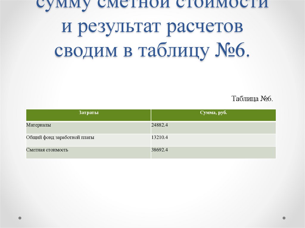 сумму сметной стоимостии результат расчетов