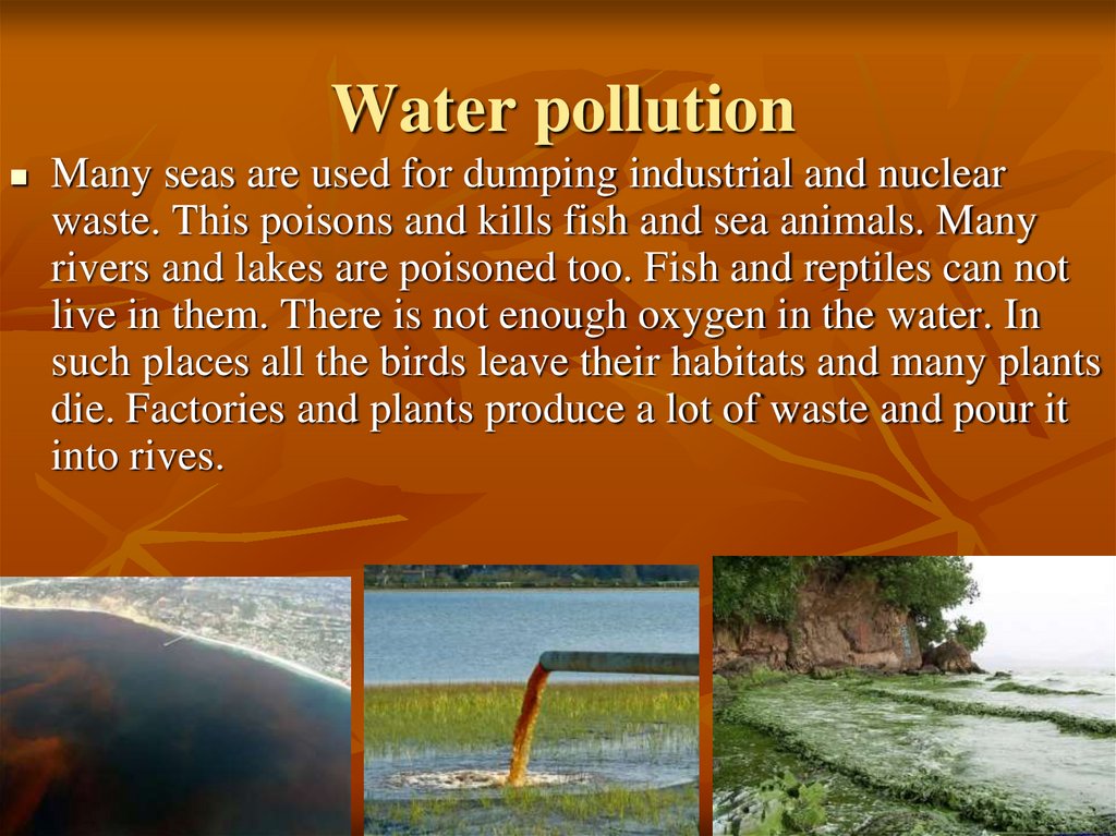Water pollutionMany seas are used for dumping industrial and nuclear