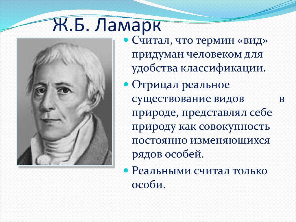 Ж.Б. ЛамаркСчитал, что термин «вид»