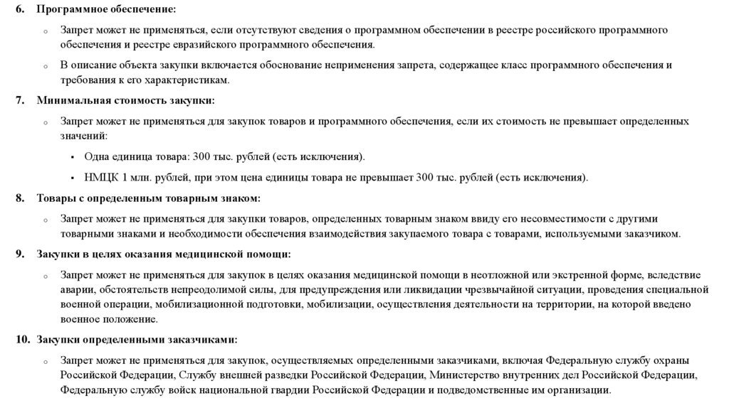 Запрет может не применяться для закупок товаров и программного обеспечения, если их стоимость не превышает определенных