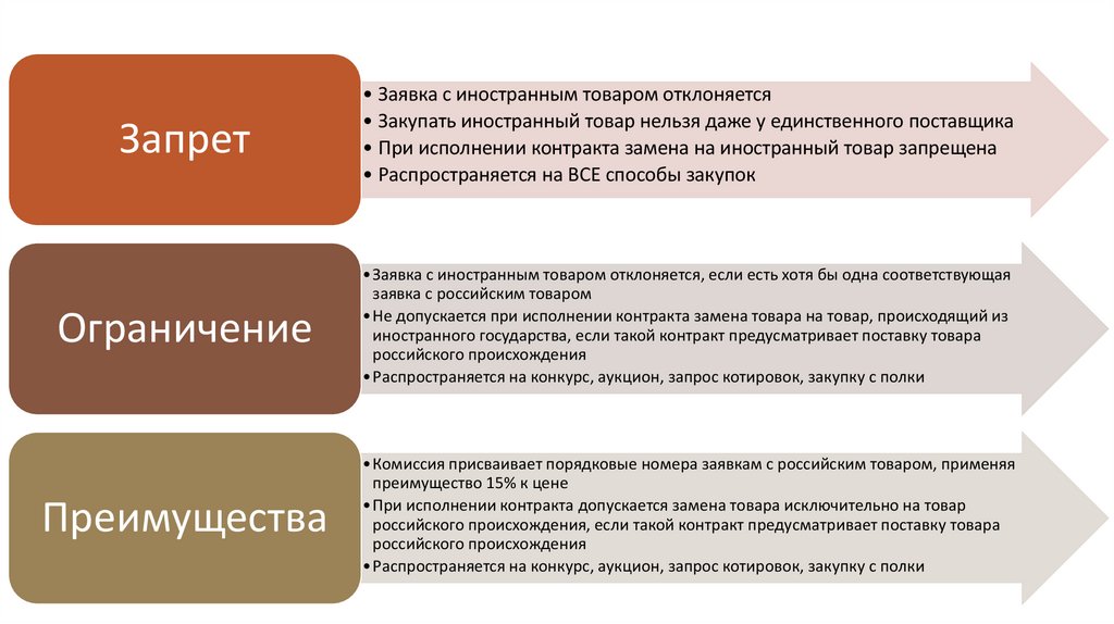 • Не допускается при исполнении контракта замена товара на товар, происходящий из