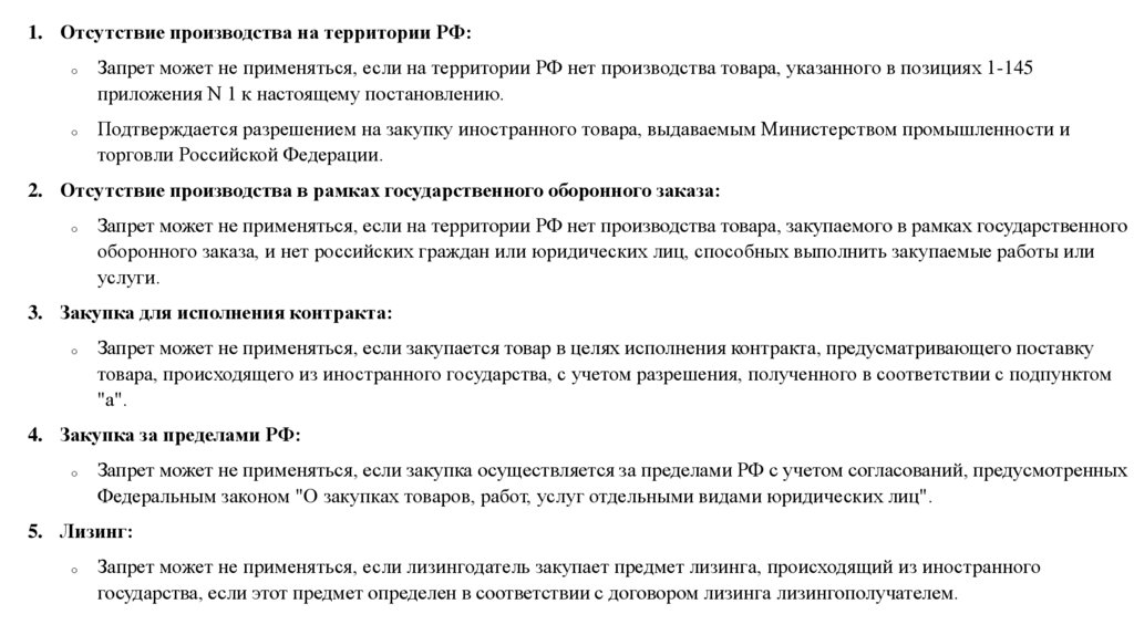 Запрет может не применяться, если на территории РФ нет производства товара, указанного в позициях 1-145