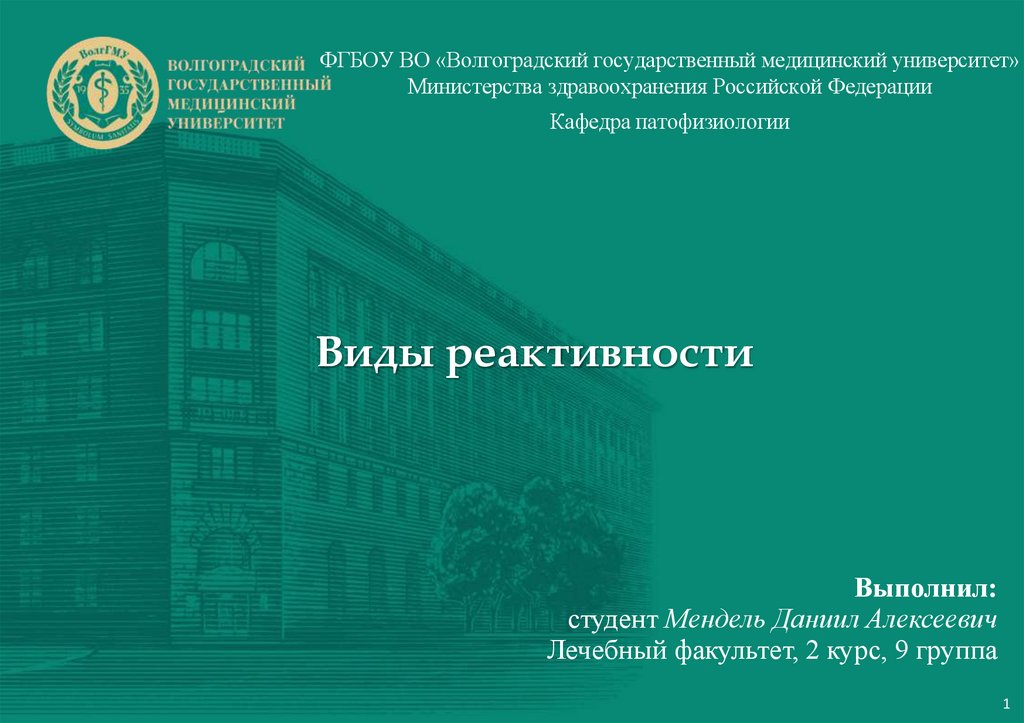 ФГБОУ ВО «Волгоградский государственный медицинский университет»Министерства здравоохранения Российской Федерации