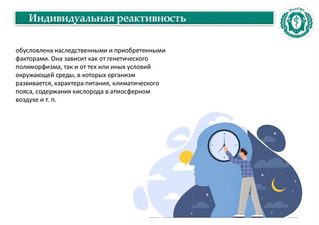 Индивидуальная реактивностьобусловлена наследственными и приобретенными