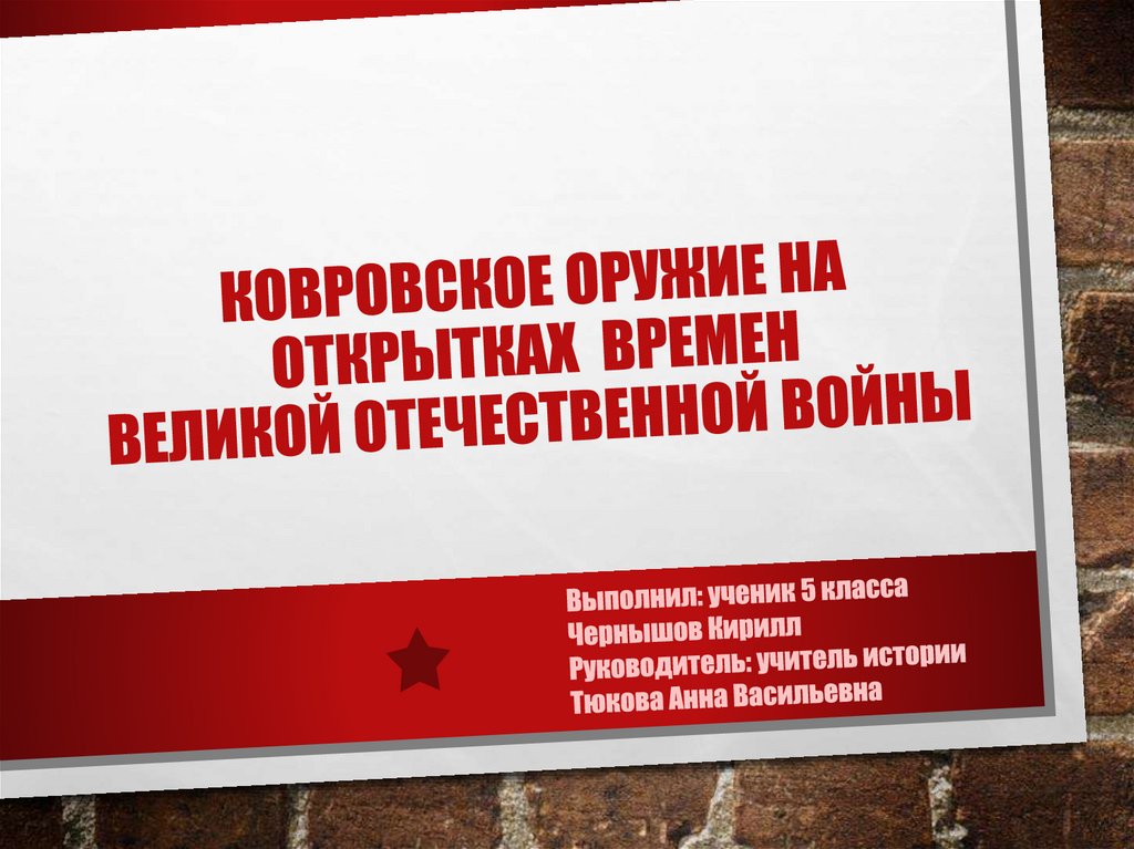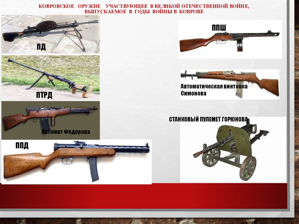 КОВРОВСКОЕ ОРУЖИЕ УЧАСТВУЮЩЕЕ В ВЕЛИКОЙ ОТЕЧЕСТВЕННОЙ ВОЙНЕ,ВЫПУСКАЕМОЕ В ГОДЫ ВОЙНЫ В КОВРОВЕ