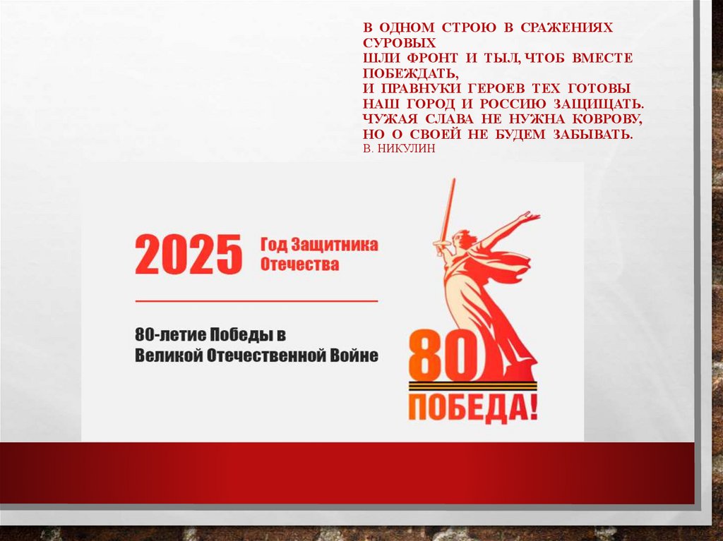 НАШ ГОРОД И РОССИЮ ЗАЩИЩАТЬ.