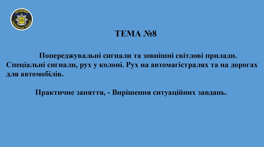 ТЕМА №8Попереджувальні сигнали та зовнішні світлові прилади.