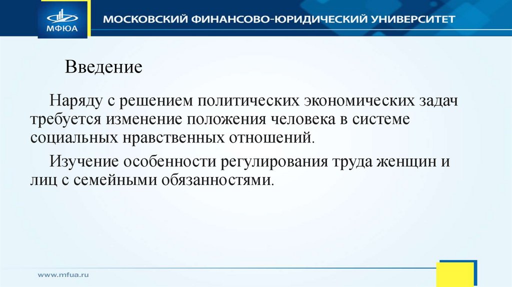 Правовые аспекты женщин в сфере социально-трудовых отношений. Введение