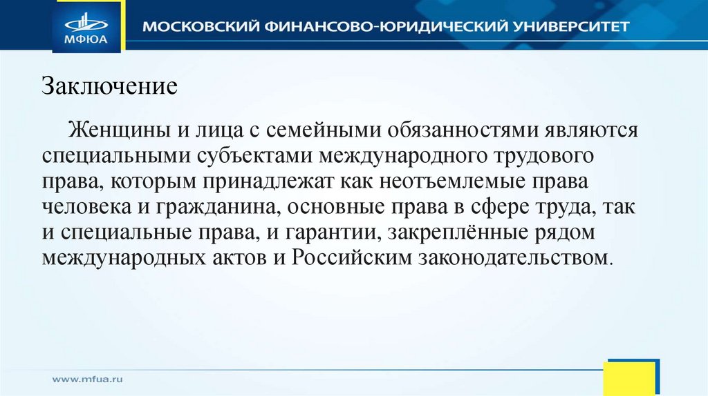 ЗаключениеЖенщины и лица с семейными обязанностями являются