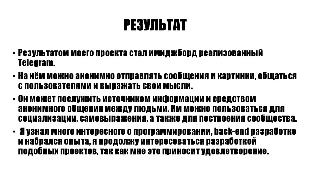 РЕЗУЛЬТАТ• Результатом моего проекта стал имиджборд реализованный
