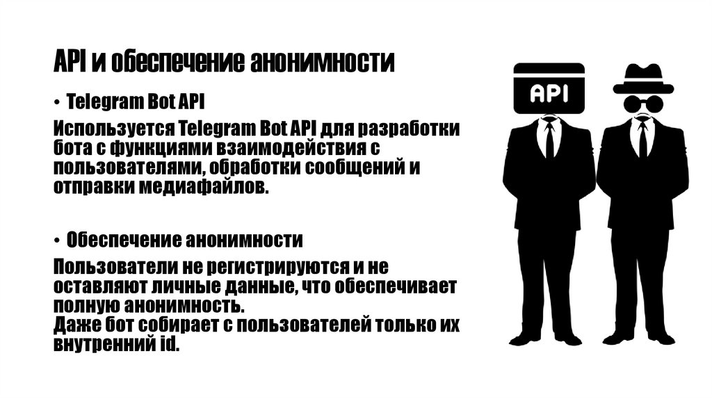 API и обеспечение анонимности• Telegram Bot API