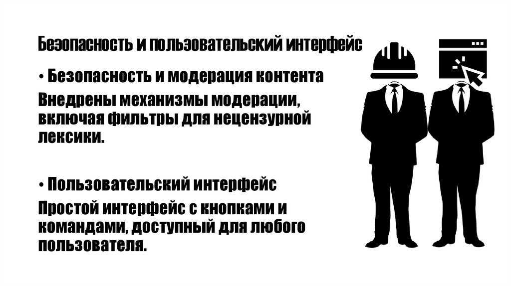 Безопасность и пользовательский интерфейс• Безопасность и модерация контента