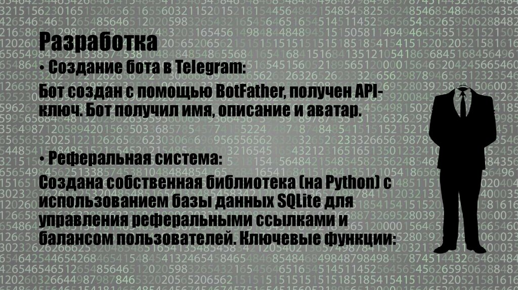 Разработка• Создание бота в Telegram: