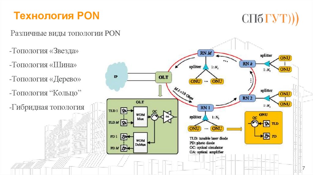 Рассмотреть технологию и топологии PON