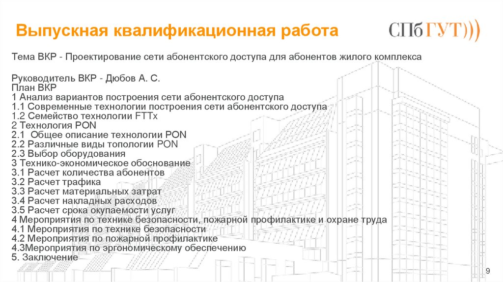 Выпускная квалификационная работаТема ВКР - Проектирование сети абонентского доступа для абонентов жилого комплекса